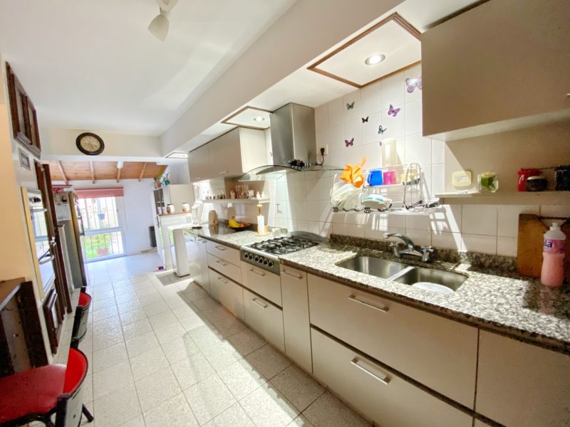 DISPUESTO EN 2 PLANTAS, COCINA DE 5×2,50, COMEDOR DIARIO 3×2,80, COMEDOR 4×3, LIVING DE 5×4, 1 BAÑO, 1 TOILETTE, 3 DORMITORIOS (1 EN SUITE), LAVADERO CUBIERTO, JARDÍN DE 5×6 Y COCHERA PARA 1 AUTO.